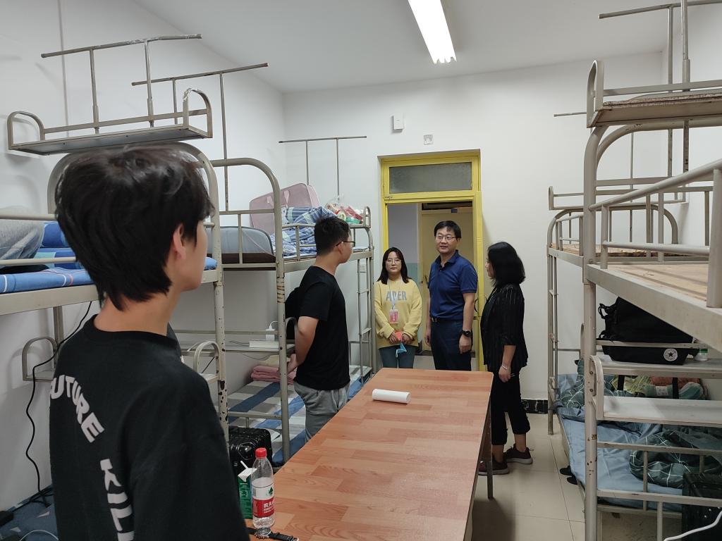 下午,学院领导带领学生辅导员共同深入新生宿舍看望2021级新生,和同学们亲切交谈,对新生的入住环境、入学教育安排表示关心,并嘱托同学们要团结友爱、珍惜大学时光、做好学业规划,让新生们感受到了学院的温暖。