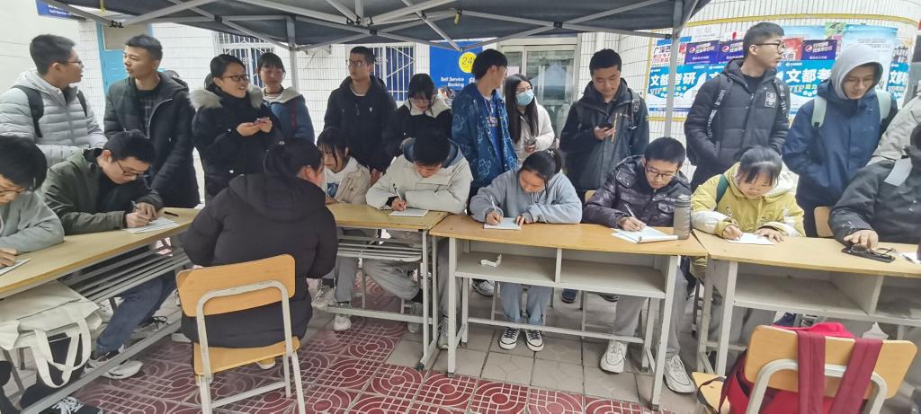 为进一步提升学生的凝聚力,缓解大家考试月的紧张情绪,12月18日,今年会jinnianhui官网心理部在食堂门口举办了“写数字”心理趣味小游戏。