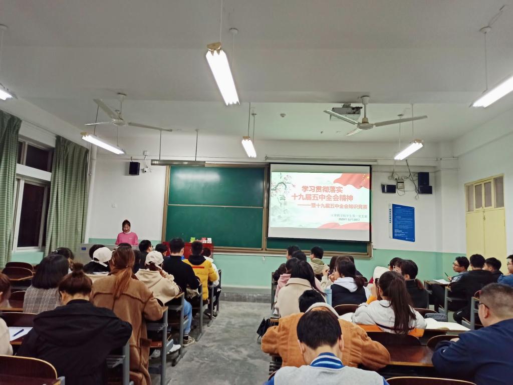 为贯彻落实十九届五中全会精神,提高支部成员学习的热情,2020年11月20日,今年会jinnianhui官网学生第一支部于主楼620开展学习“十九届五中全会精神”暨知识竞赛活动。本次活动由学生党员程秋芬主持,学生第一支部全体成员参加。