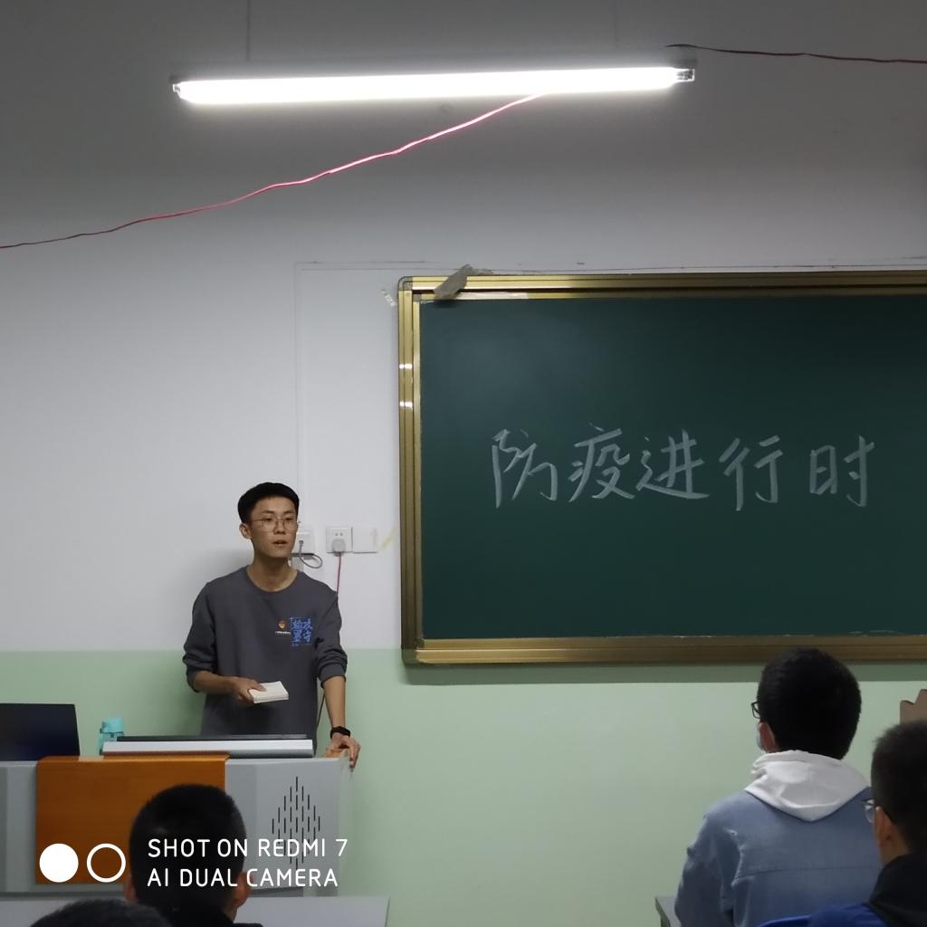 2020年10月16日19点,今年会jinnianhui官网于教学北楼233教室召开今年会jinnianhui官网防疫守健团日活动,今年会jinnianhui官网团总支书记侯勇出席会议并提出防疫要求,计科203赵雨晰同学作为学生代表主持会议,2020级新生部分同学参加团日活动。