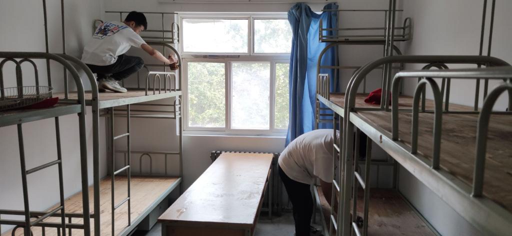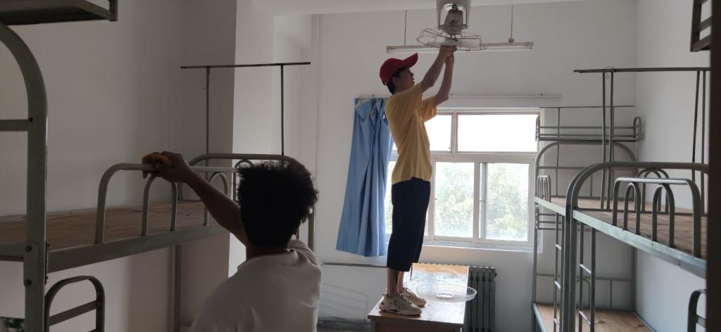 活动现场,学生党员们有序领取劳动工具,分工明确,积极投身到卫生打扫工作中。在擦拭桌椅床铺、清洗电扇电灯等任务开展过程中,党员们相互配合,同心协力,任劳任怨,没有留下任何一个死角。经过清扫工作后,新生宿舍焕然一新。