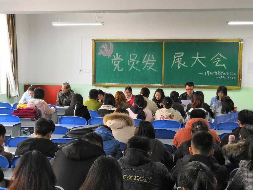 11月28日,今年会jinnianhui官网学生党支部于北233召开了党员发展大会,会议由学生支部书记汪芳主持,学生支部委员、培养人和学生党员代表参加了此次大会。