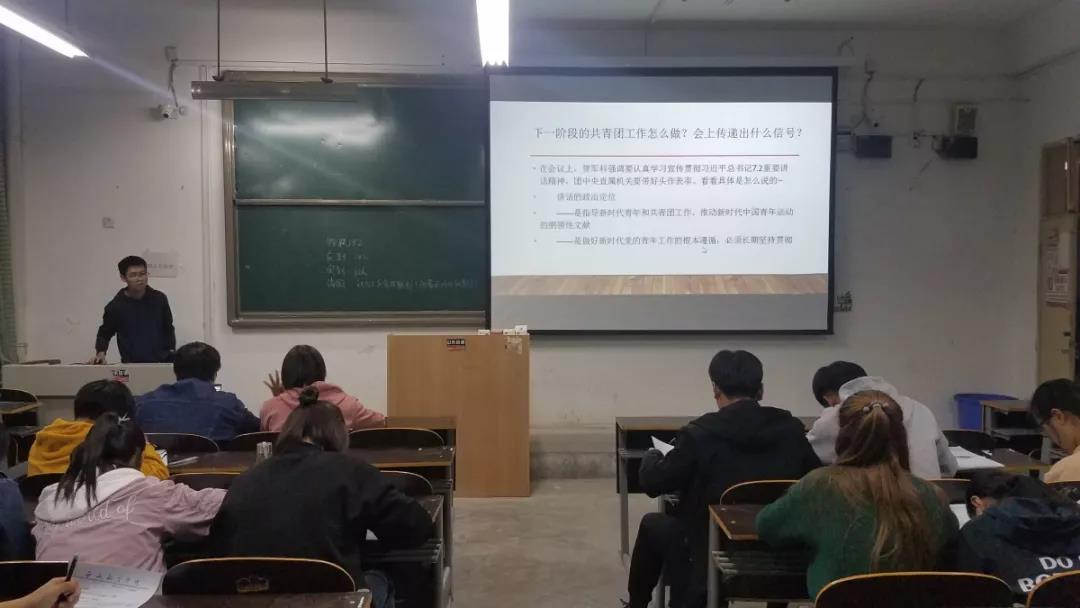 主持人首先带领大家了解了从过去到改革后的变化:从饮食、居住到着装和出行,同时对改革开放以来中国的变化以及新青年的变化进行了讨论;接着大家学习团的十八大精神,了解习近平总书记“七·二”讲话的政治地位,领悟内容精髓;最后大家一起观看了电影《厉害了,我的国》。同学们表示:习近平总书记这次重要讲话是指南针,为共青团工作提供了总遵循、总定位、总航标;是冲锋号,让我们感受到了一种时不待我,只争朝夕的紧迫感。