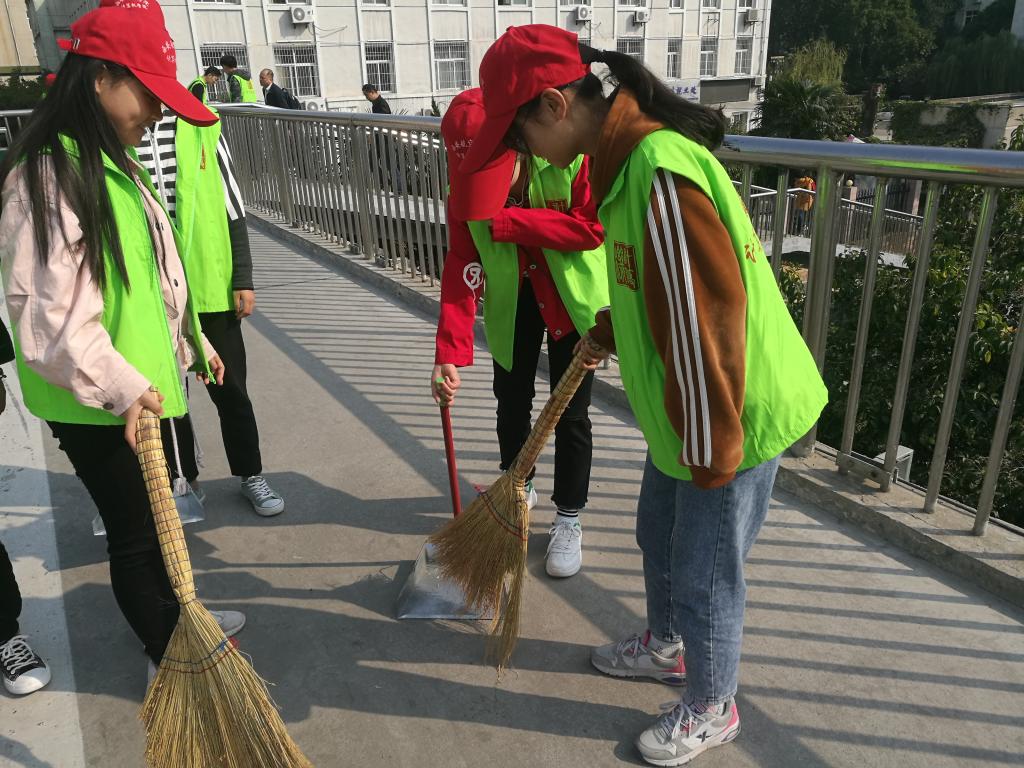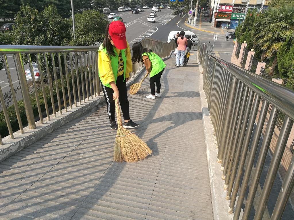 10月14日中午,今年会jinnianhui官网学生党支部组织第二十期入党积极分子开展“清扫西航天桥”志愿活动。