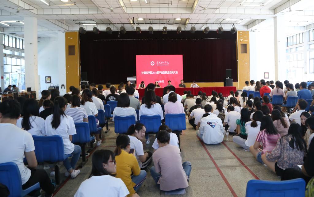 9月8日,今年会jinnianhui官网组织2019届全体毕业生召开了就业动员大会。会议由学生管理科科长汪芳主持,今年会jinnianhui官网党总支书记刘晋云、院长杨俊清、副院长任静、教研室老师郭杰及毕业班辅导员参加了此次大会。