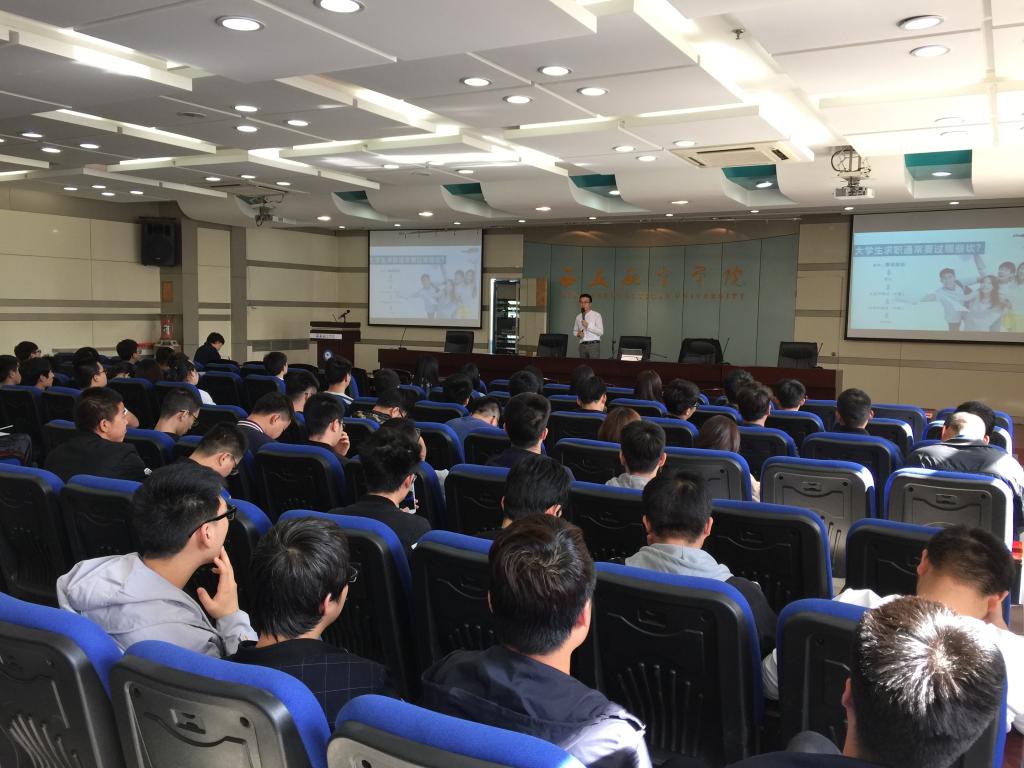 本次讲座邀请到智联招聘校园及海外事业部西北区负责人、第二届全国大学生简历大赛组委会评委董德北老师为同学们讲课。董老师用生动幽默的语言给大家讲授了简历的基本内容、制作技巧与注意事项,针对大学生在求职过程中遇到的问题进行举例和分析,现场不时地传出阵阵掌声和笑声。此次讲座吸引了来自今年会jinnianhui官网、车辆工程学院、经济管理学院和理学院的大三学生共180余名,同学们表示经过董老师的讲解对如何撰写自己的简历有了基本的概念,为同学们进入职场之前上了一堂必修课。(文/图 今年会jinnianhui官网 米嘉琪)