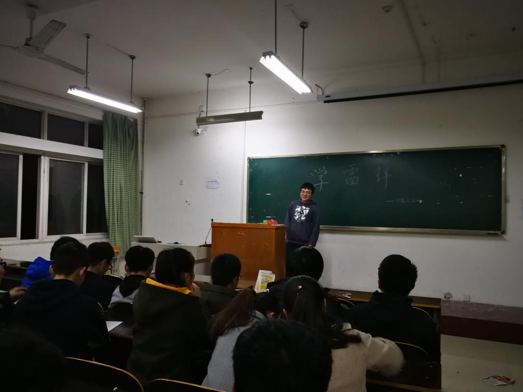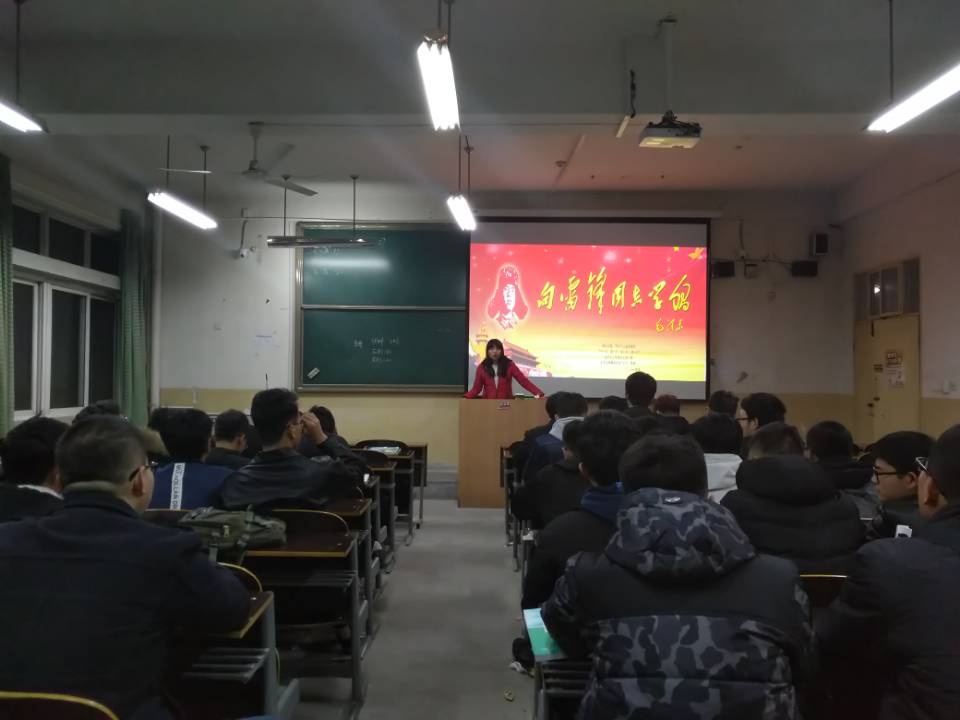 雷锋精神集中体现了中华民族的传统美德和伟大的民族精神,体现了共产党人的特殊品格和我党全心全意为人民服务的根本宗旨,反映了广大人民群众对建设美好社会、创造美好生活的迫切愿望。各班紧抓学习雷锋要点,开展了形式各异的团会活动。有的班级以学习雷锋为主题,开展了关于当代践行雷锋精神的知识竞答;有的班级以宿舍为单位交流学习先进事迹;有的班级进行了“雷锋精神在我心中”的即兴演讲。通过形式各异、富有创新性的活动,同学们不仅深刻领会到雷锋精神的内涵,同时激起了学做雷锋,践行当代大学生使命的强烈愿望。