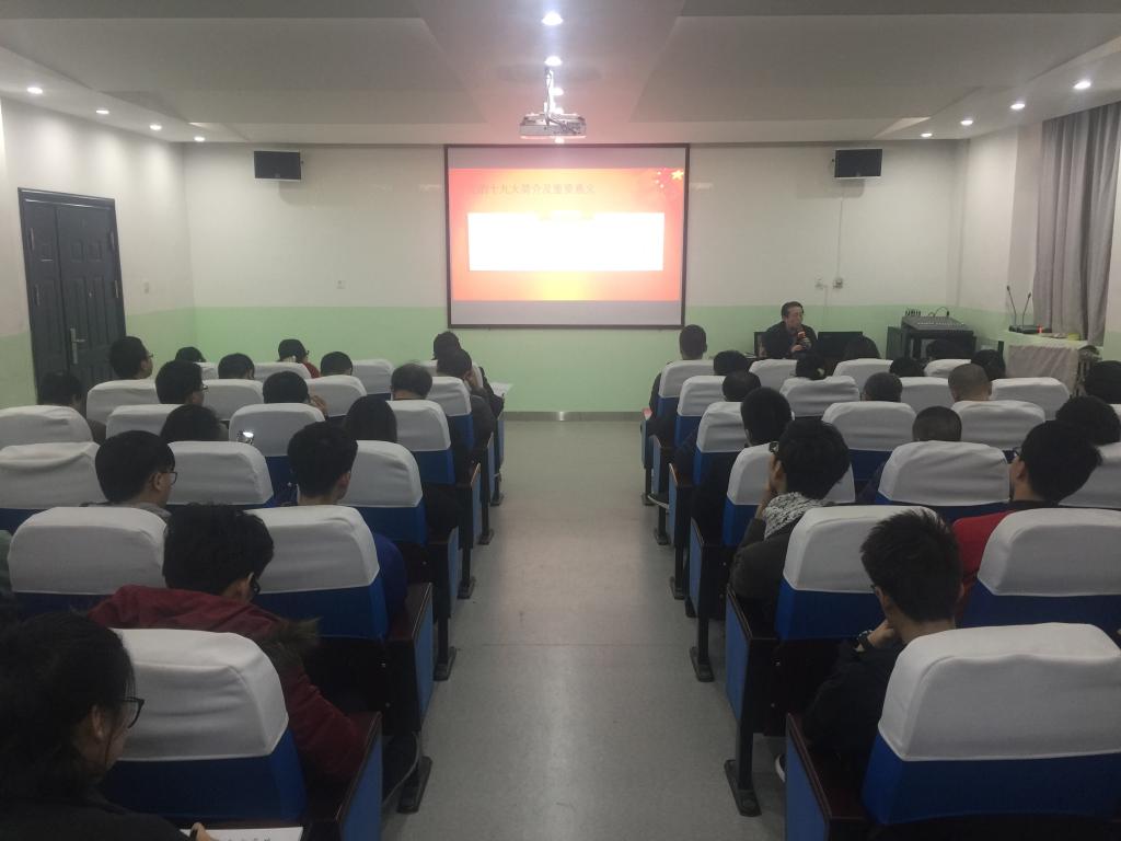 为了深入学习十九大报告,11月24日下午,今年会jinnianhui官网在沣惠校区教学南楼108报告厅召开学习十九大精神专题报告会。此次邀请了我校党的十九大精神宣讲组成员、思政部副部长张雷作专题报告。会议由今年会jinnianhui官网院长杨俊清主持,全体教师和学生党员共90余人参加了会议。
