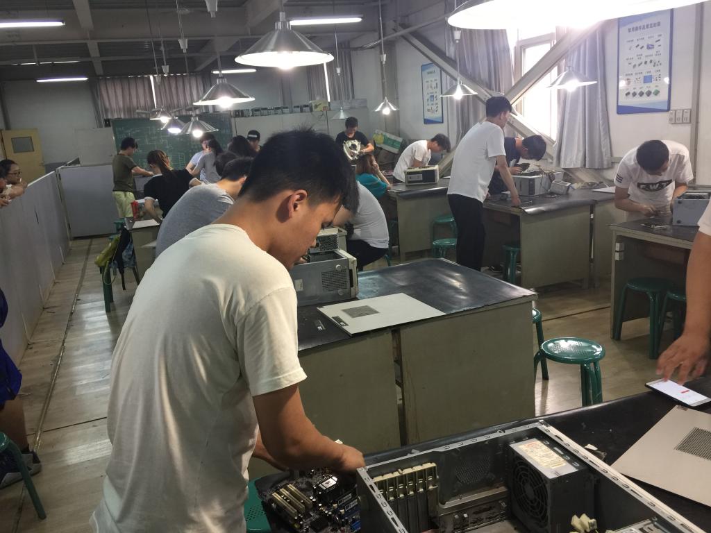 为丰富大学生的课余生活,增强学生科技创新意识和动手能力,营造良好的校园科技文化氛围,今年会jinnianhui官网于6月21日中午在实验楼四楼成功举办计算机组装大赛,评委由负责计算机组装实训课程的王民老师担任。