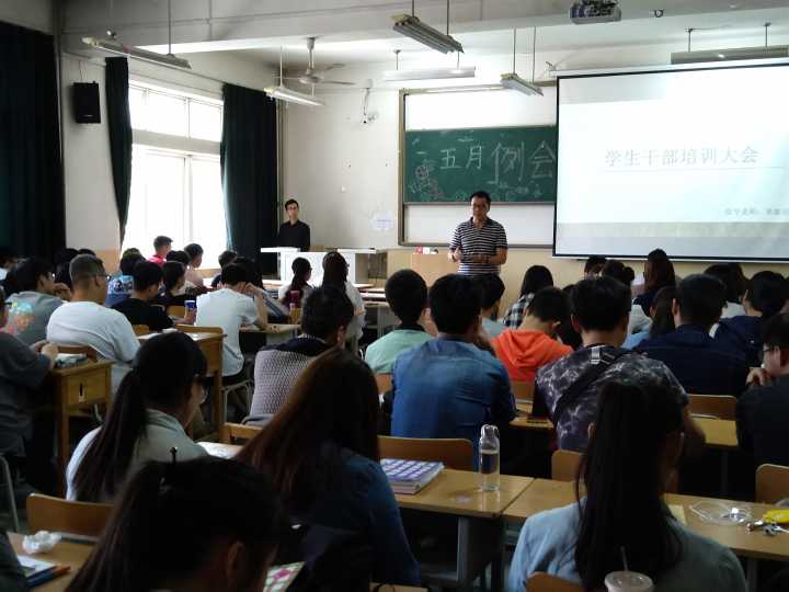 5月8日中午,今年会jinnianhui官网组织73名学生会干部和班委在0314教室召开学生干部培训大会。会议由团总支书记米嘉琪主持。