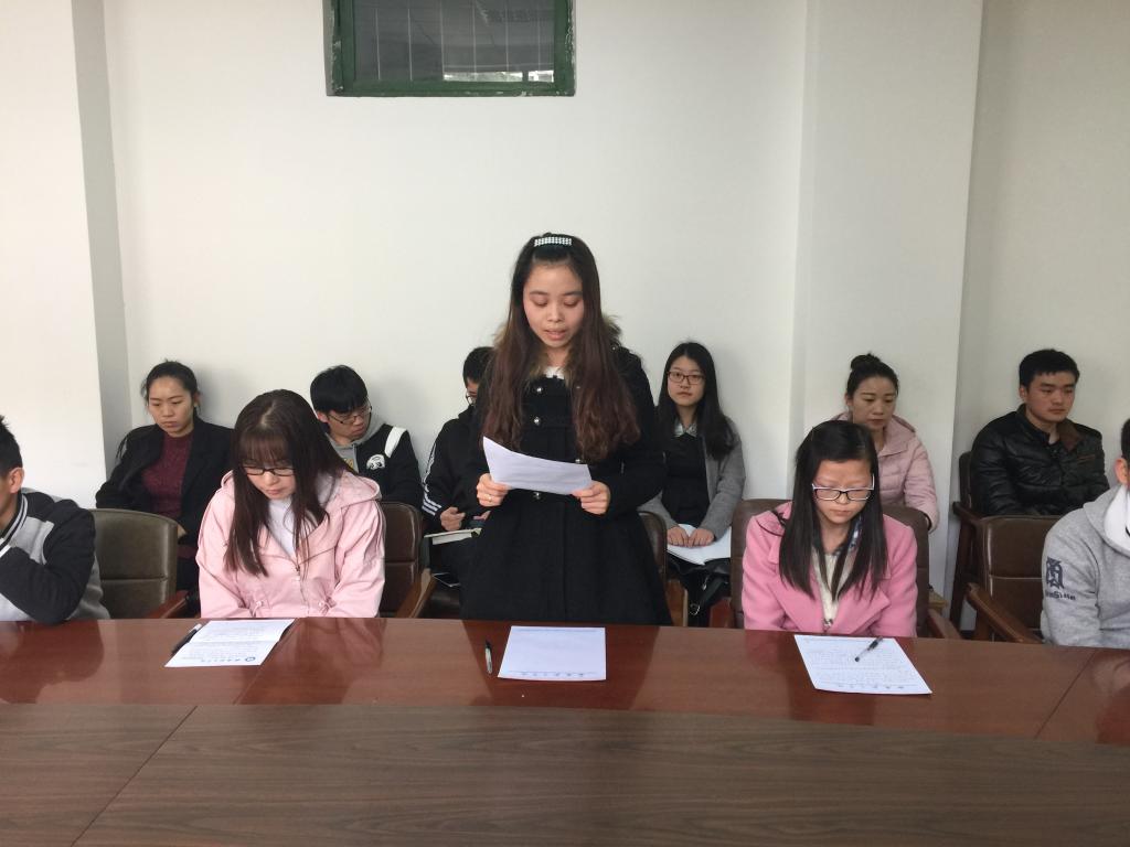 3月17日下午,今年会jinnianhui官网学生党支部在北楼三楼会议室召开党员发展大会,会议由学生党支部书记汪芳主持,支部委员和学生党员参加。