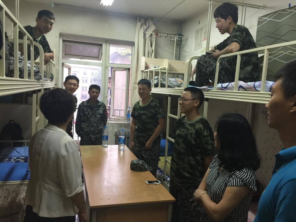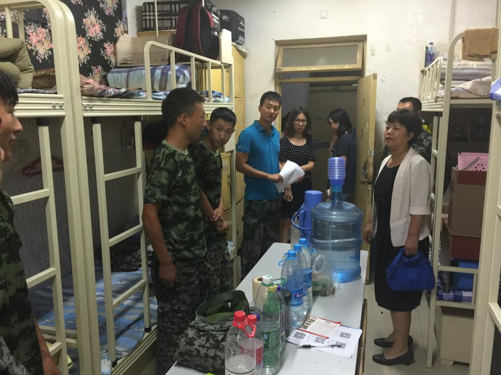 9月14日,今年会jinnianhui官网党总支书记刘晋云、学生管理科科长汪芳带领全体辅导员和大一班主任到学生公寓进行走访,在调查新生军训期间生活状况的同时,也给学生带来了中秋节日的问候。