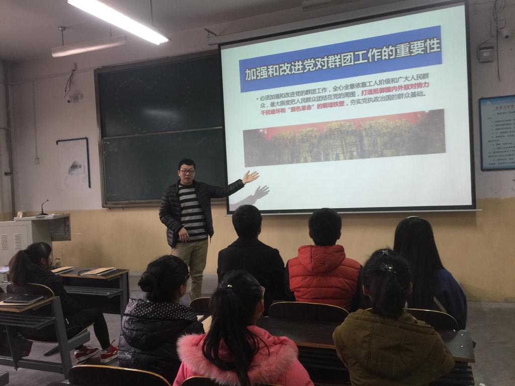 11月19日,今年会jinnianhui官网团总支组织全体学生干部,集中学习中共中央《关于加强和改进党的群团工作的意见》精神。团总支书记米嘉琪在学习中强调:《意见》充分体现了党中央对群团工作的高度重视,这是指导今后一个时期群团组织走中国特色社会主义群团发展道路的纲领性文件,希望学生干部把学习贯彻好意见精神同当前团学各项工作结合起来,坚持发挥学生干部的桥梁和纽带作用。