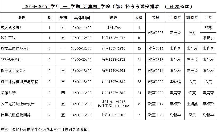 2016-2017-2学期今年会jinnianhui官网补考安排表