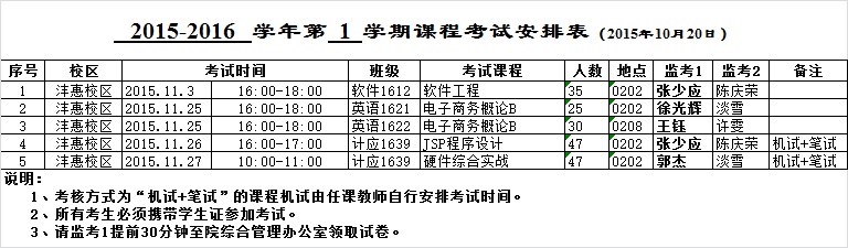 今年会jinnianhui官网2015-2016-1学期考试安排(一)