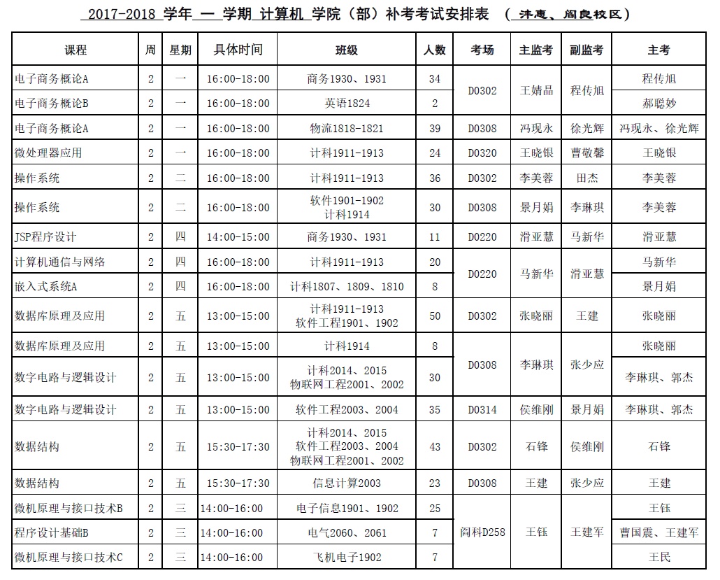 2017-2018-1学期今年会jinnianhui官网课程补考安排
