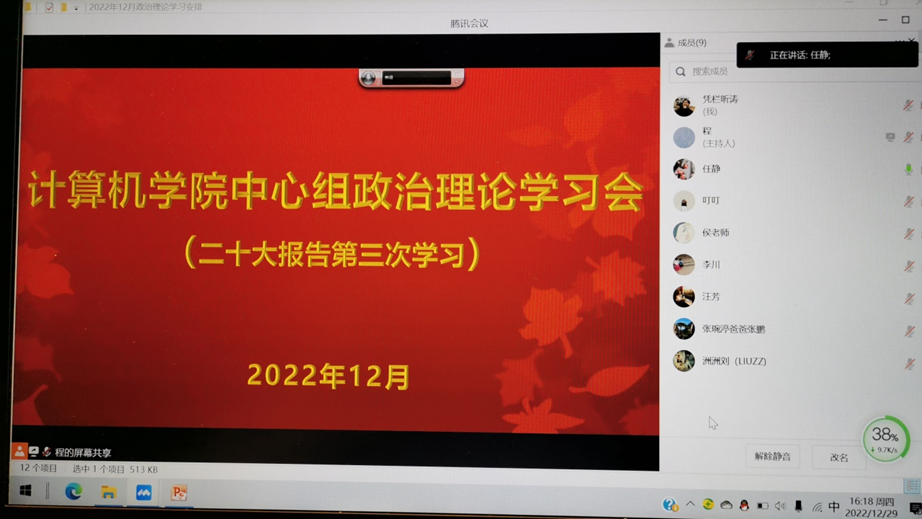 20221229日下午,今年会jinnianhui官网党总支中心组以线上方式举行了党的二十大精神第三次集中学习,经济管理学院党总支书记张鹏和校党委宣传部徐楠楠同志到会巡学旁听,学院中心组成员参加了会议,学院党总支书记胡红亮主持本次学习会。