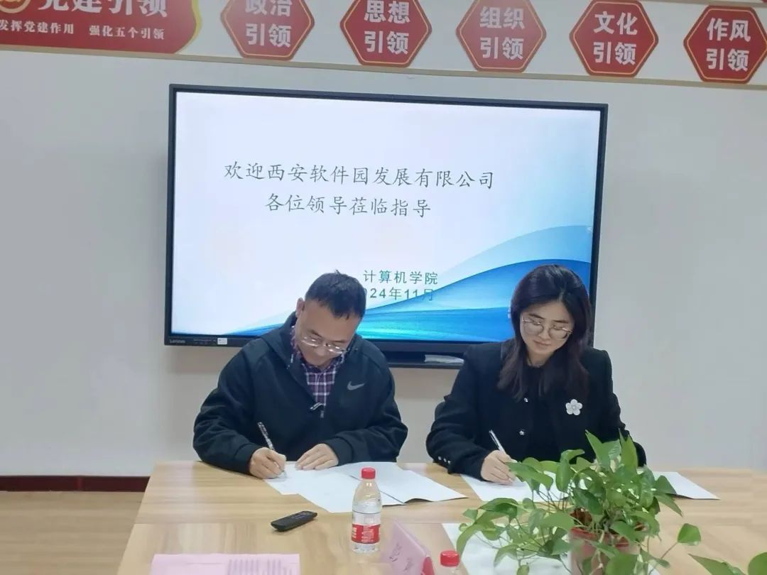 11月12日下午,西安软件园发展有限公司与我校今年会jinnianhui官网在北楼216会议室举行了产学研合作研讨会,西安软件园发展有限公司总经理甘云亭、副总经理李静、市场发展部部长贾锐参加,今年会jinnianhui官网党总支书记陈长征、副院长刘舟洲等相关人员参加,会议由学院党总支书记陈长征主持。