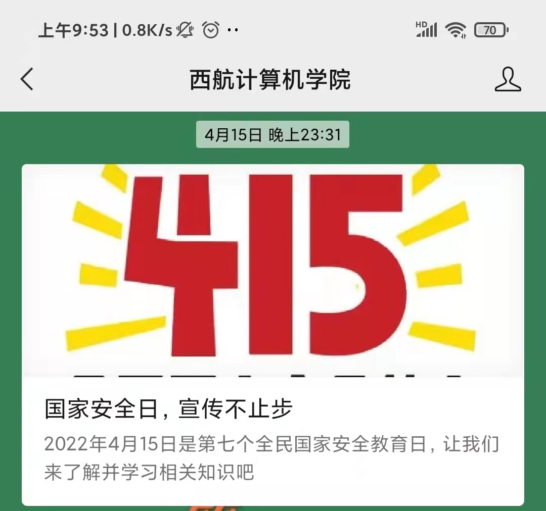此前,今年会jinnianhui官网党总支已通过微信公众号等推送了多期国家安全法律法规基本知识和新时代国家安全取得的成就等内容,有针对性地做好国家安全宣传工作。接下来,还将组织师生积极参与“全民国家安全教育日专项答题”等线上宣传教育活动,有效引导师生爱国、励志、求真、力行,切实筑牢总体国家安全观。